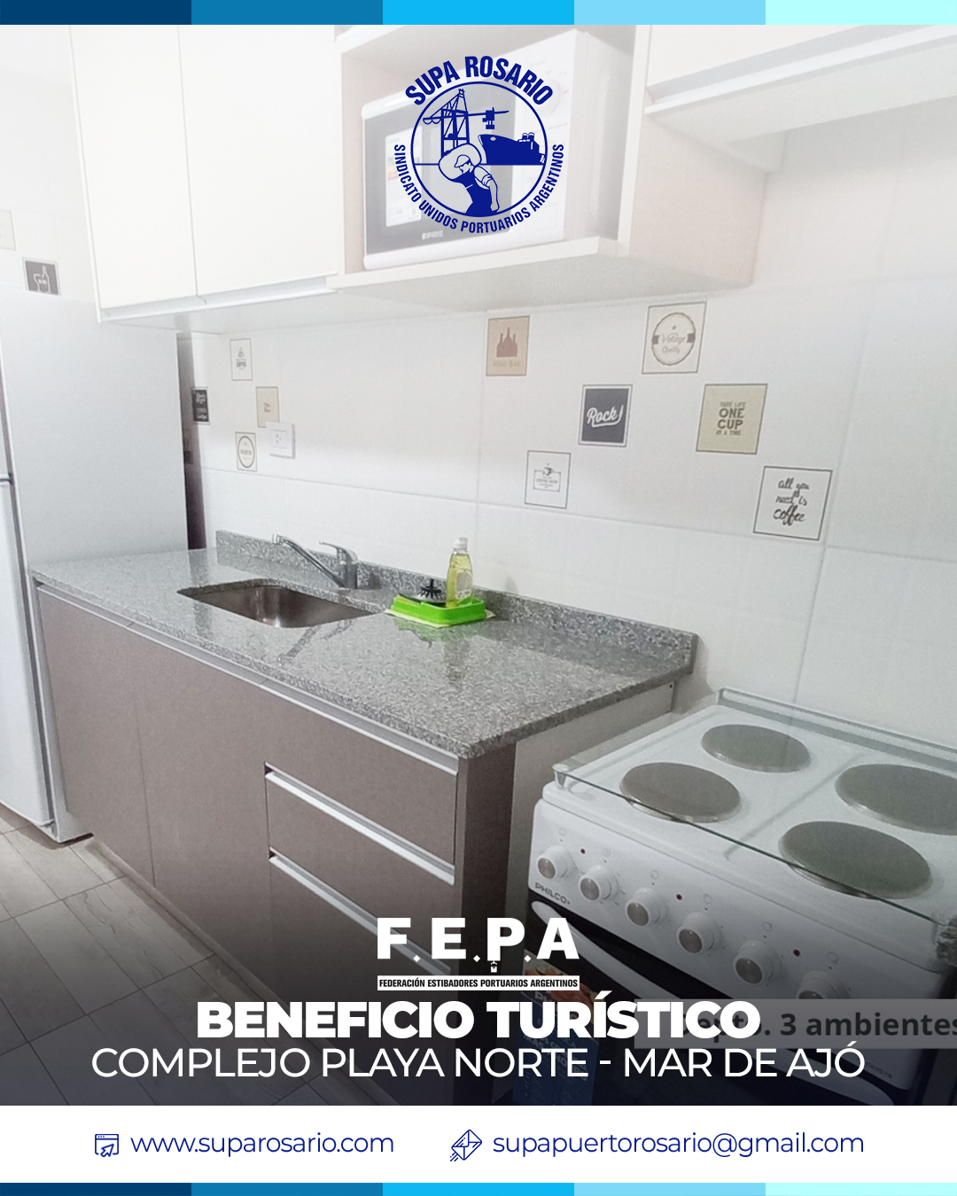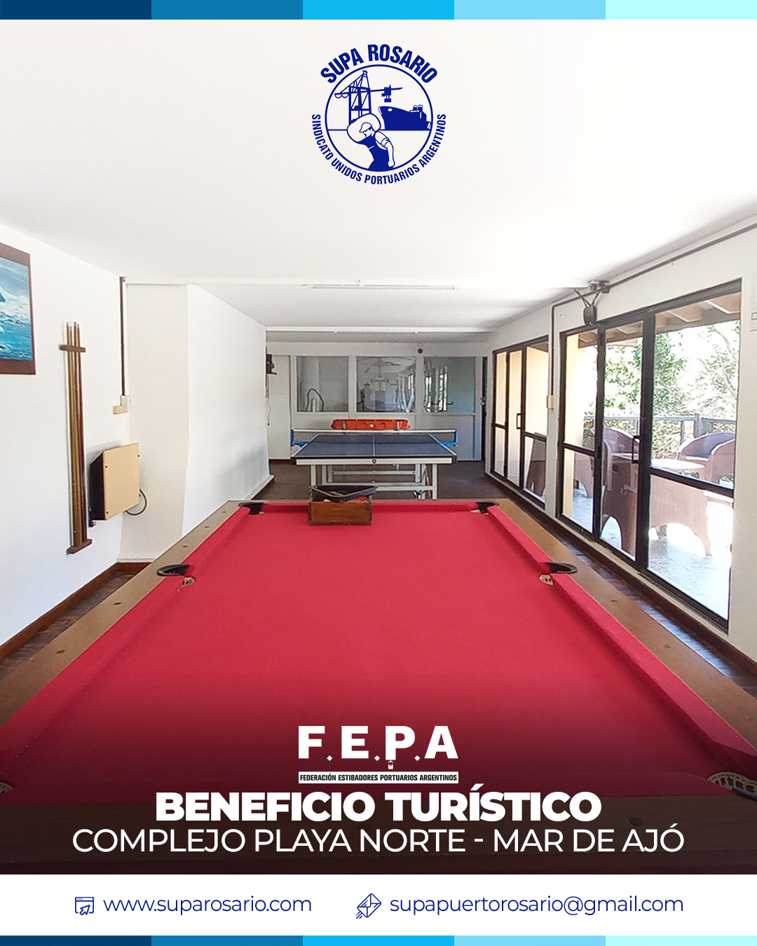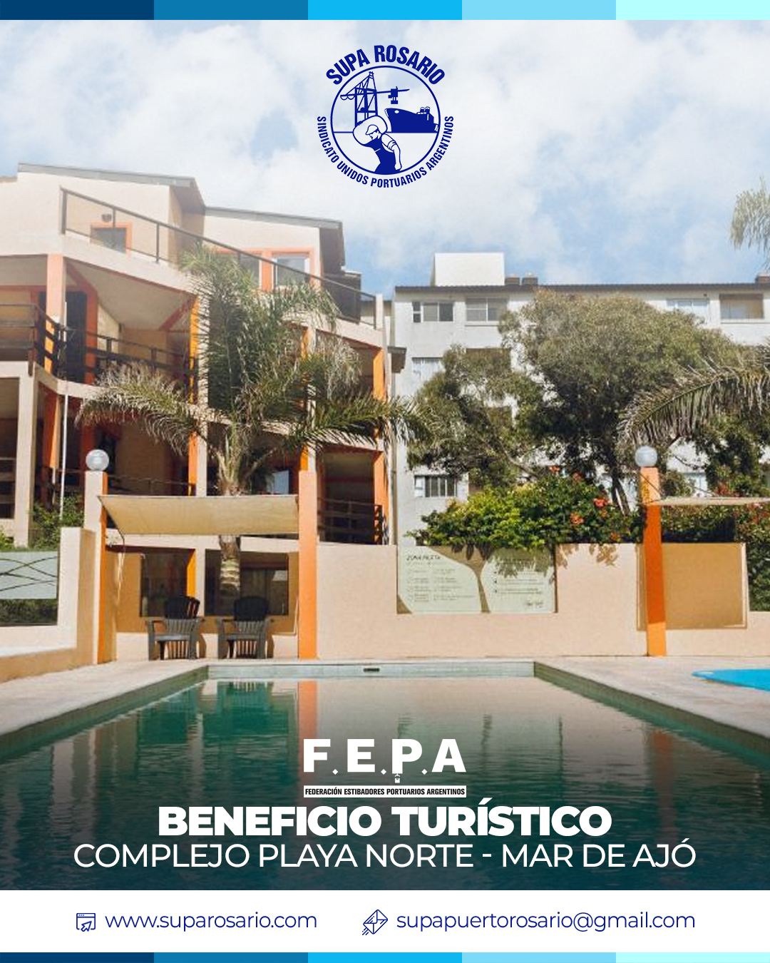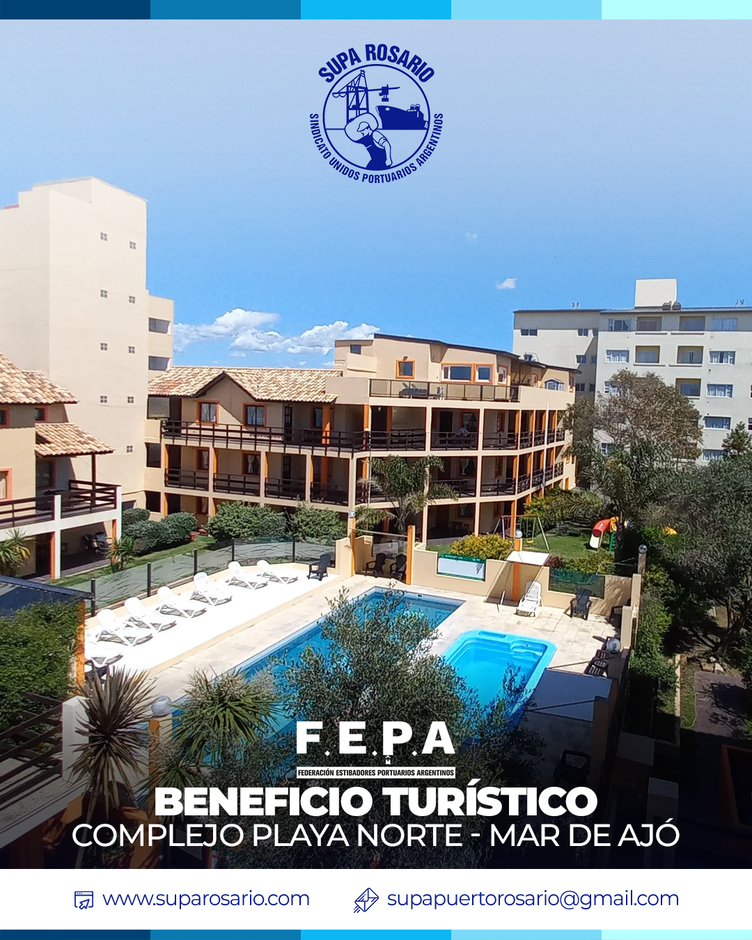 Gracias al acuerdo histórico firmado entre SUPA Rosario y FEPA, nuestros afiliados pueden acceder a tarifas especiales en el Complejo Playa Norte en Mar de Ajó.