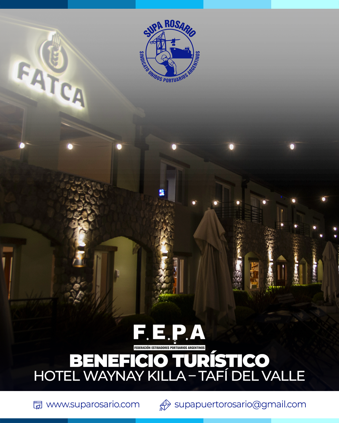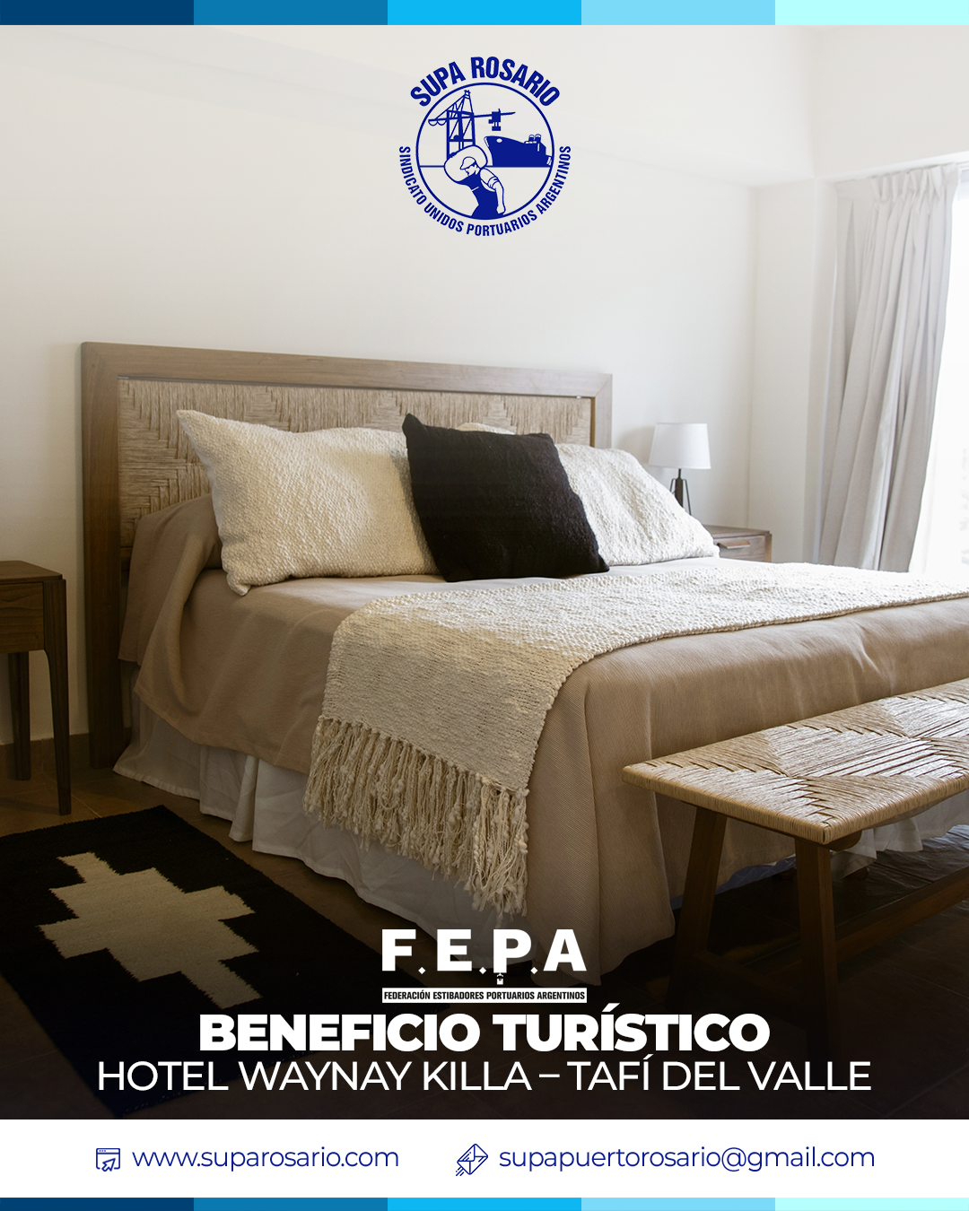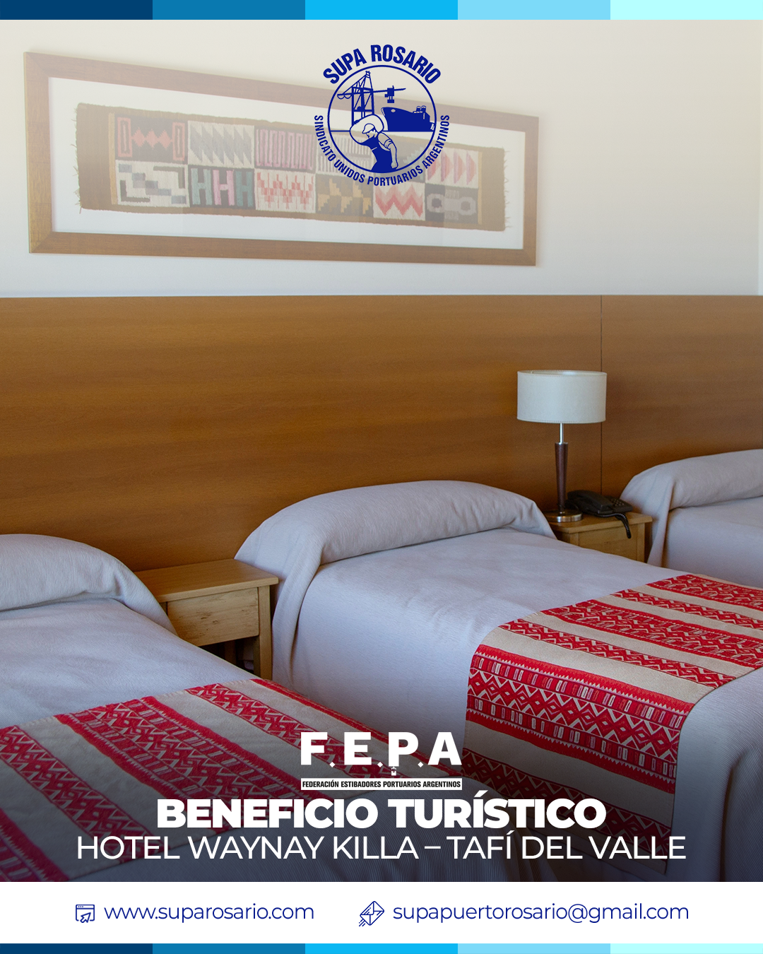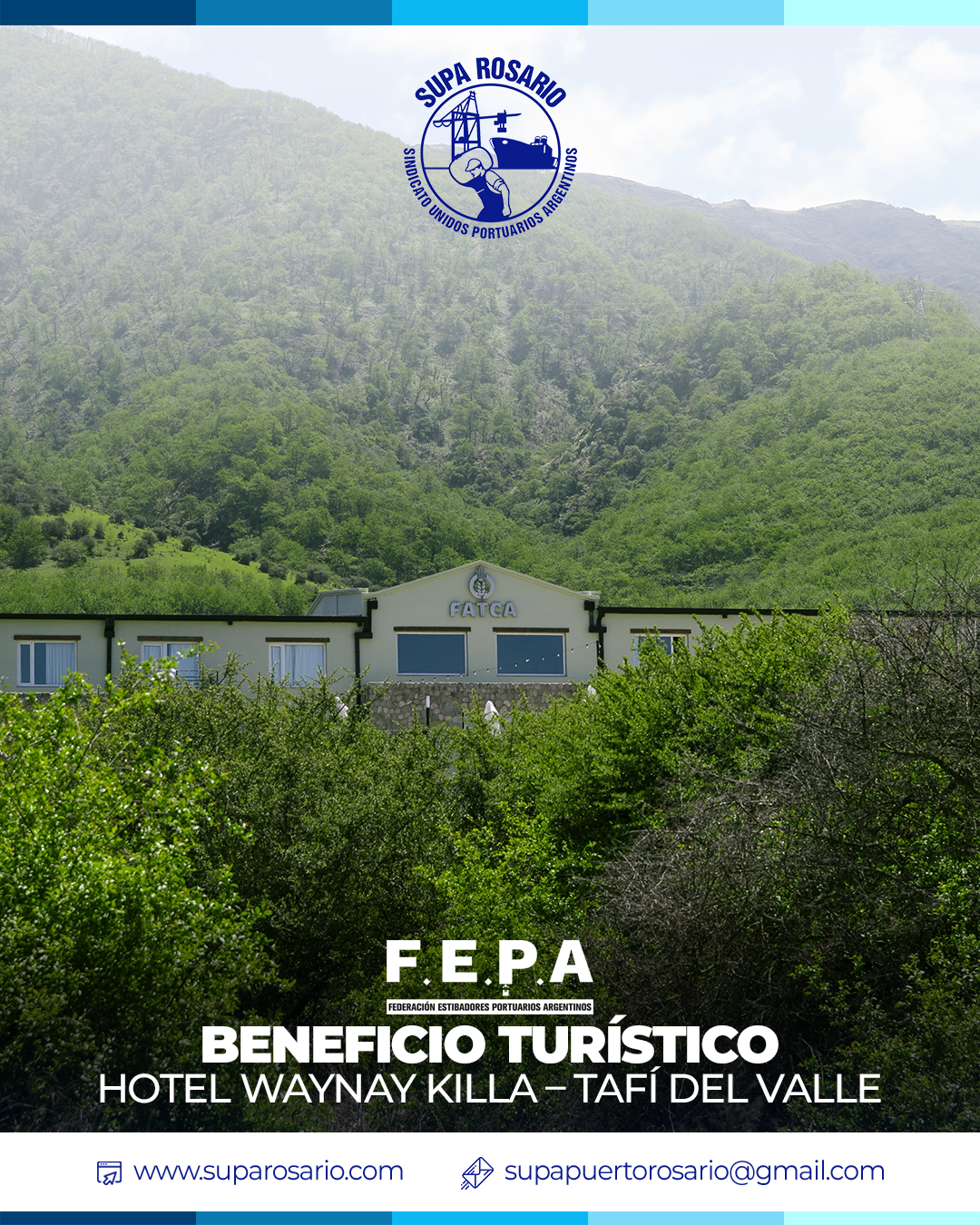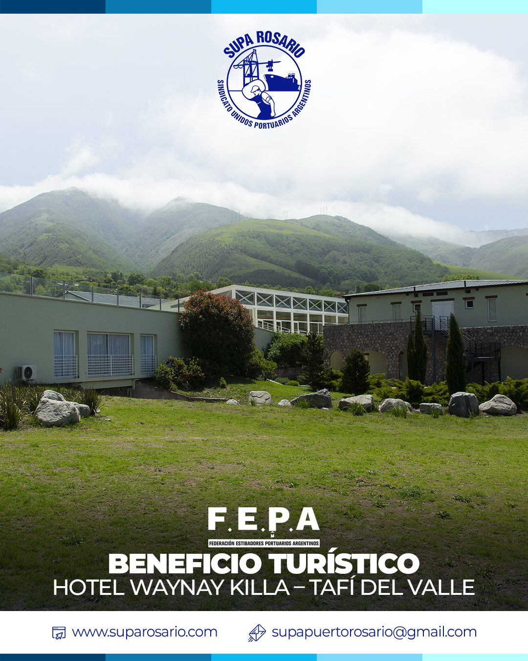 Seguimos ampliando los beneficios para todos los trabajadores portuarios. A través de FEPA, ya podés alojarte con tarifas especiales en el Hotel Waynay Killa (FATCA), en pleno corazón de Tafí del Valle.
