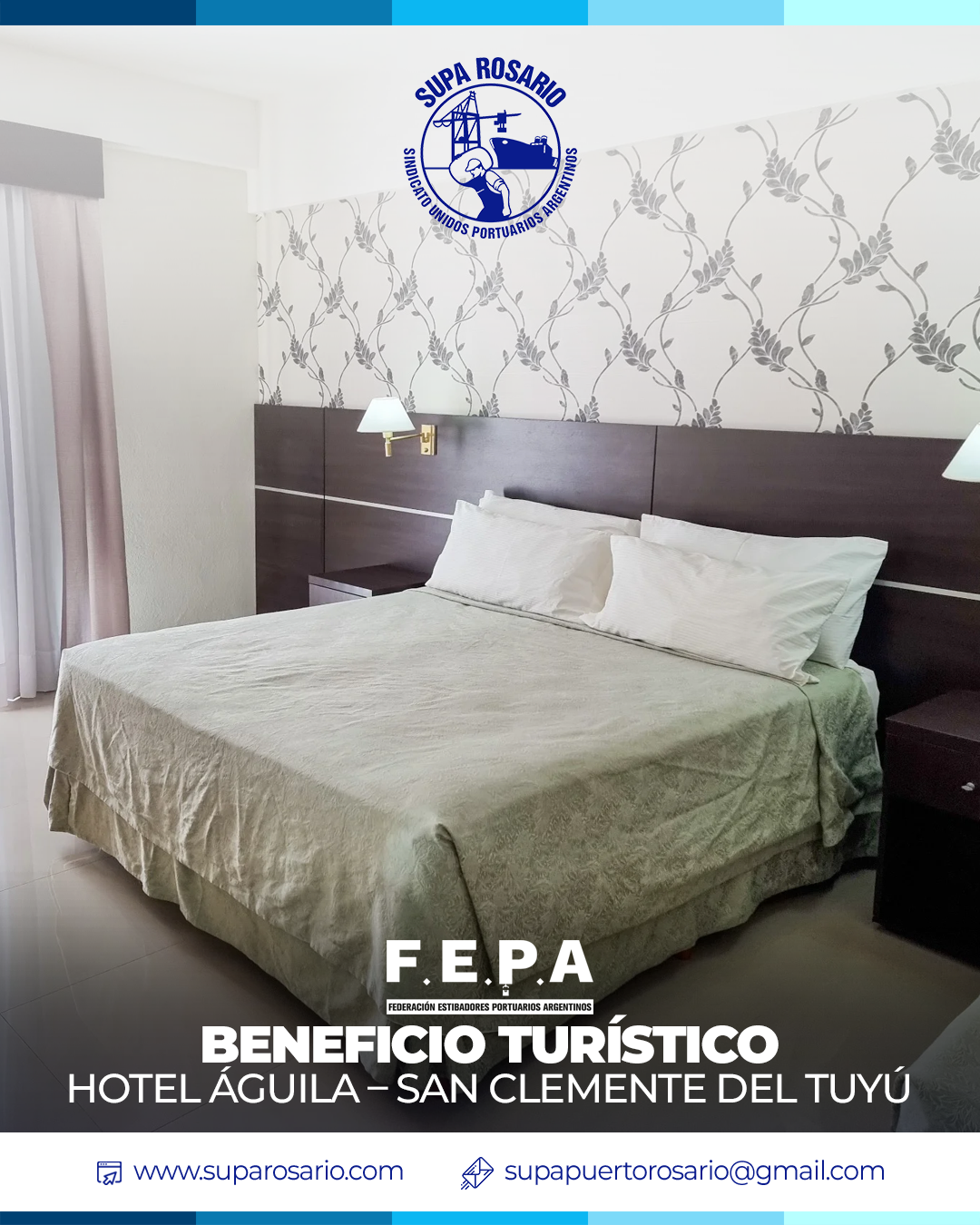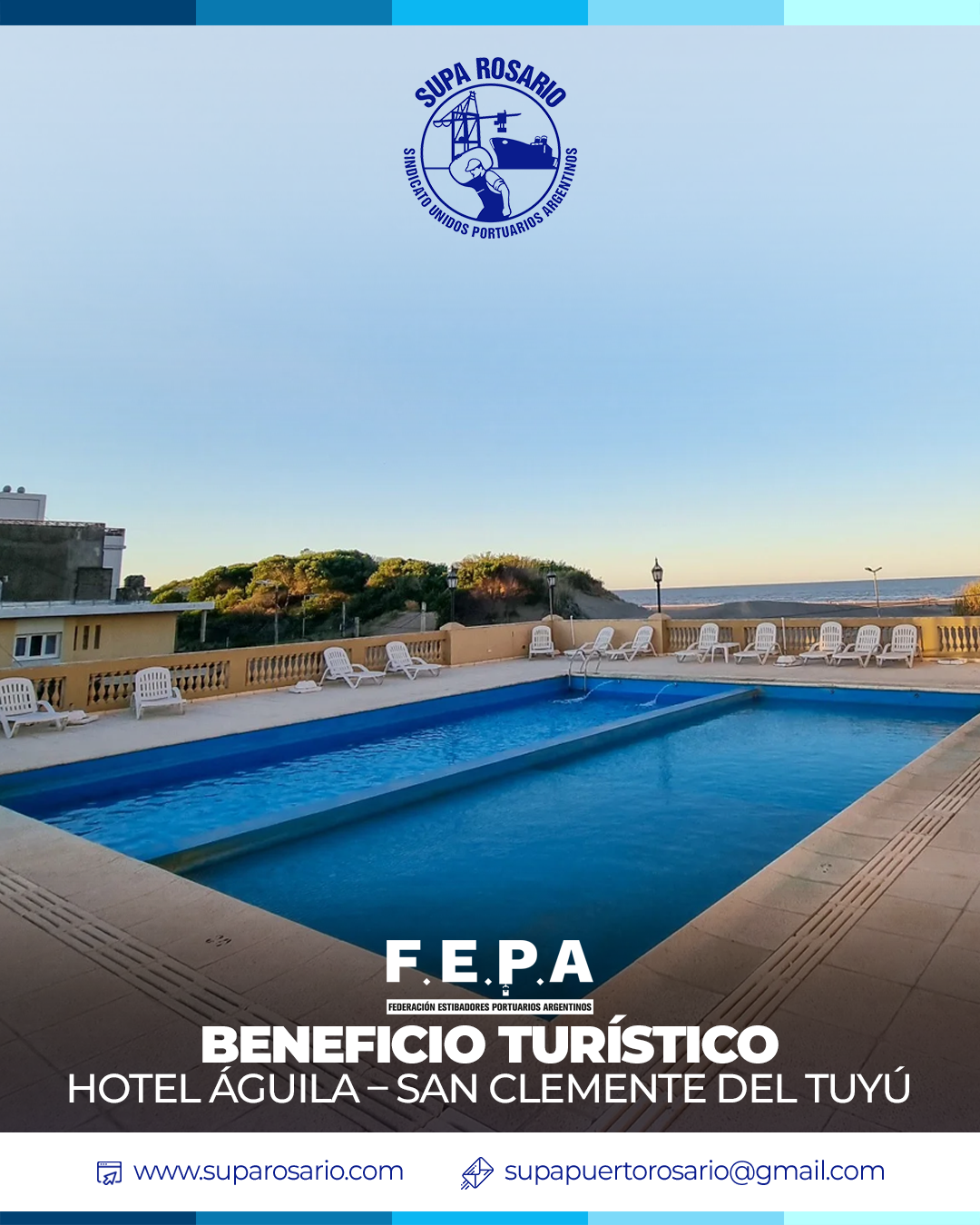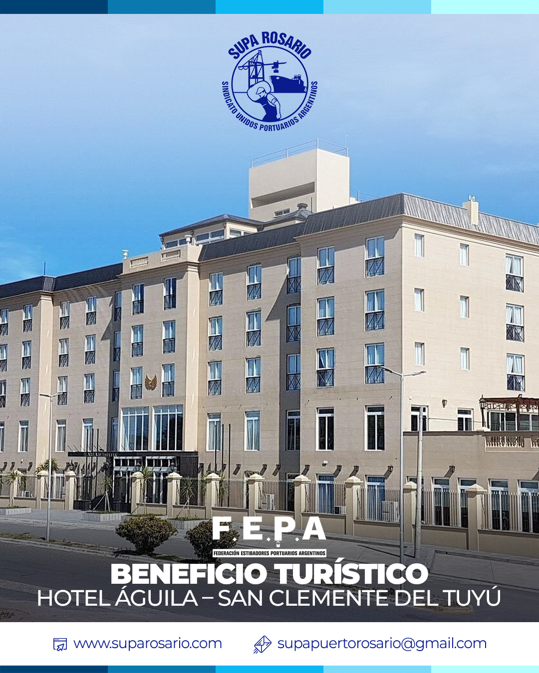 Los trabajadores portuarios podrán acceder a tarifas diferenciales en el Hotel Águila, ubicado en Av. Costanera 1729, San Clemente del Tuyú.