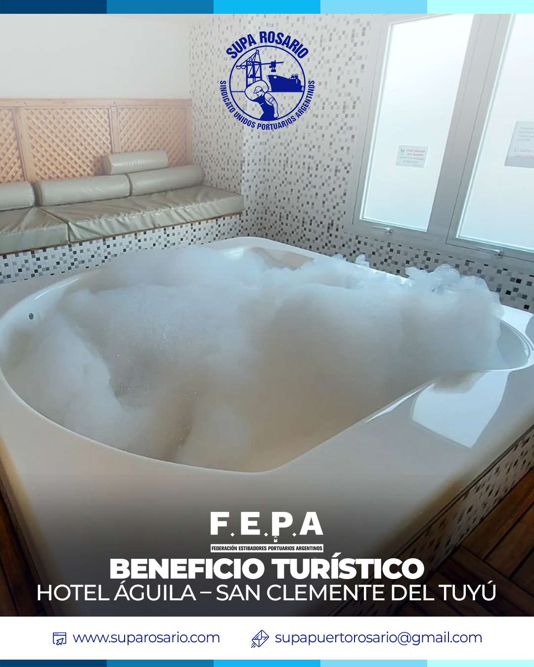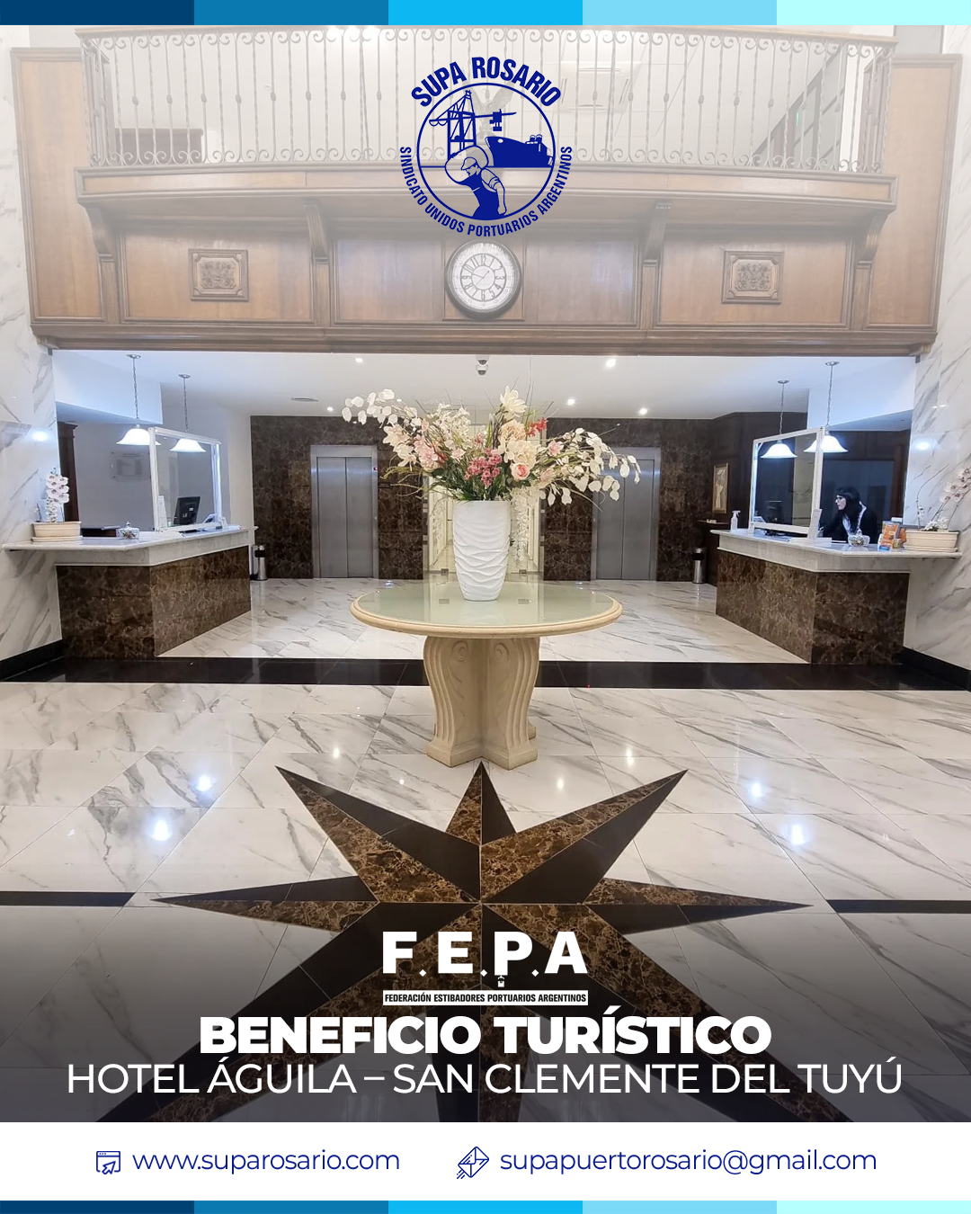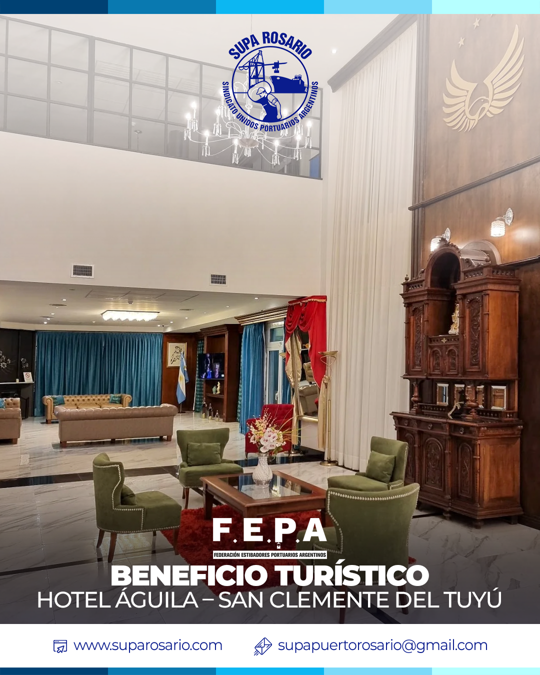 Los trabajadores portuarios podrán acceder a tarifas diferenciales en el Hotel Águila, ubicado en Av. Costanera 1729, San Clemente del Tuyú.